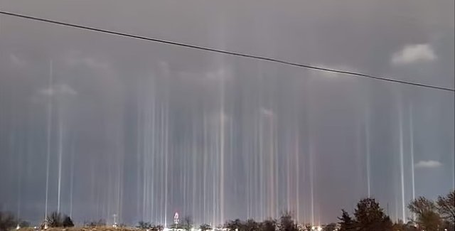 Жители сразу нескольких штатов стали свидетелями редкого погодного явления, называемого "столбами света", которые некоторые сравнивают с лучами от инопланетных космических кораблей, пишет Daily Mail.