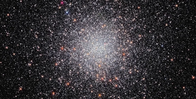 В этом шаровом скоплении очень плотно друг к другу находятся сотни тысяч звезд, которые разделяет всего 1 световой год. Для сравнения, расстояние до ближайшей к Солнцу звезды, Проксима Центавра, составляет 4 световых года, а вообще в нашей галактике среднее расстояние между звездами – 5 световых лет.