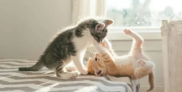 Гайдош-Кмецова отмечает, что когда кошки молоды и борются, но не поют, они, вероятнее всего, играют. Однако когда драка включает длительные неактивные паузы, погоню и боевой клич — вы застали самый разгар драки.