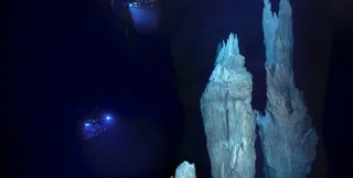 Таинственный ландшафт зубчатых башен расположен на глубине около 700 метров, а самый высокий шпиль достигает порядка 60 метров в высоту.