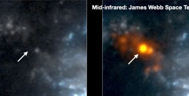 С помощью космического телескопа Уэбб ученые смогли точно определить, где находится загадочный источник очень яркого инфракрасного излучения, который скрывает толстый слой пыли. Этот свет затмевает собой две галактики, которые находятся в процессе слияния, но что именно излучает этот свет пока что не ясно. Также непонятно, почему этот свет намного ярче, чем ожидали ученые, пишет ScienceAlert.