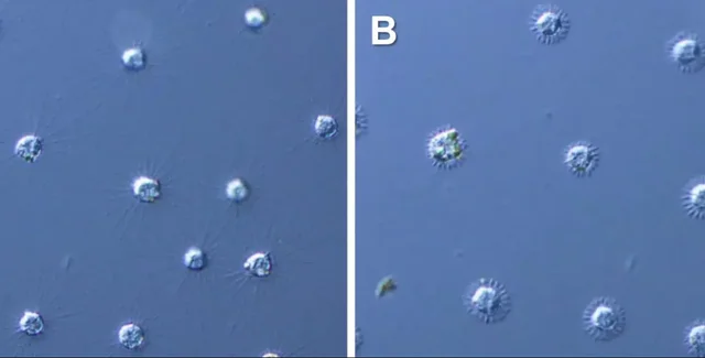Исследователи обнаружили гены и белки, ответственные за быстрое отдергивание "рук" гелиозоев в ответ на изменения в окружающей среде. Это один из самых быстрых известных примеров клеточной подвижности.