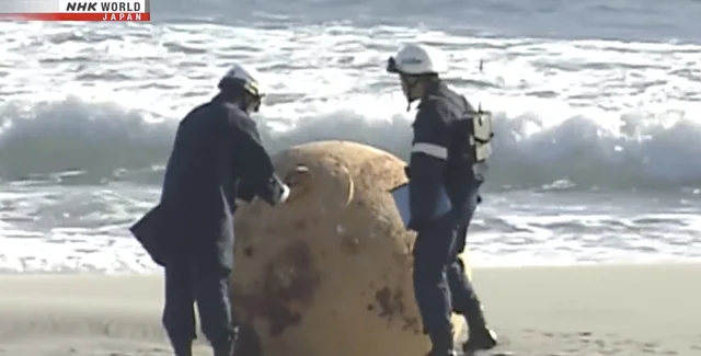 Японские власти, судя по всему, сперва решили, что на берег могли быть выброшена мина. На место происшествия были отправлены взрывотехники. Но сканирование шара показало, что он полый и невзрывоопасный.