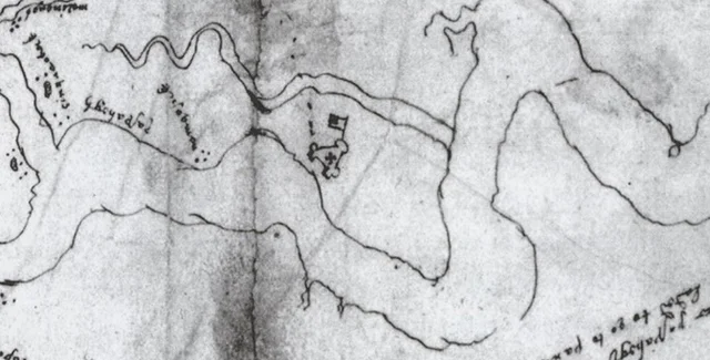 Если внимательно присмотреться к карте, то можно заметить объект, похожий на флаг, виднеющийся с северного вала форта. Он и привел к новым раскопкам на ранее неисследованном участке Джеймстауна.