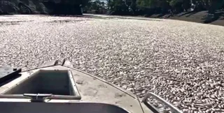 На запечатленных местными жителями кадрах видна апокалиптическая картина реки, усланной телами миллионов мертвых рыб, через которую почти нереально переплыть даже на моторных лодках.
