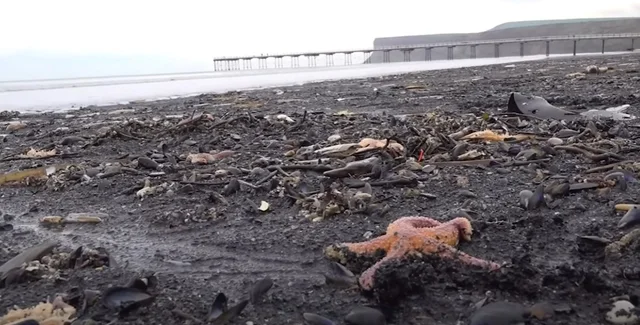 По словам 58-летнего владельца пляжных домиков на набережной Стюарта Маршалла, на побережье его застало весьма удручающее зрелище — повсюду мертвые морские звезды, моллюски, устрицы и крабы. Кроме того, мужчина рассказал, что прилив также вынес на берег загадочное месторождение черного мусора, которого ранее здесь не наблюдалось.
