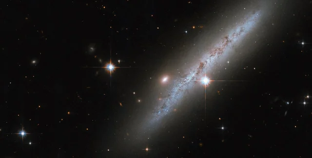 Чтобы сделать это изображение, Хаббл использовал свою мощную камеру Advanced Camera for Surveys, которая может видеть объекты из далекого космоса в широком диапазоне длин волн света: от ультрафиолетового до ближнего инфракрасного. На новом изображении видно, что галактика UGC 2890 имеет синий цвет с нитями темно-красной пыли, которые ее пронизывают повсюду. Также в галактике видны ее самые яркие звезды.