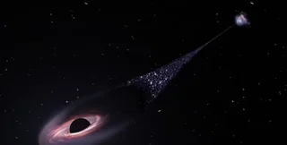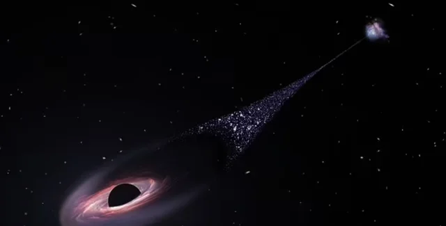 Ученые из NASA обнаружили сверхмассивную черную дыру, которая мчится сквозь Вселенную. Ее масса составляет примерно 20 млн масс Солнца и за ней тянется хвост из звезд.