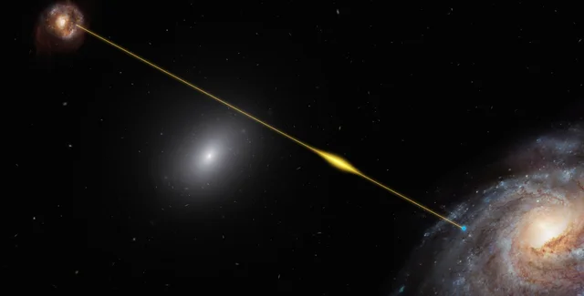 Нидерландские астрономы говорят, что новые радиоимпульсы прибыли к нам с расстояния в примерно 4 млрд световых лет и прошли через ближайшие к нам галактики Треугольника и Андромеды, прежде чем попасть в Млечный Путь.