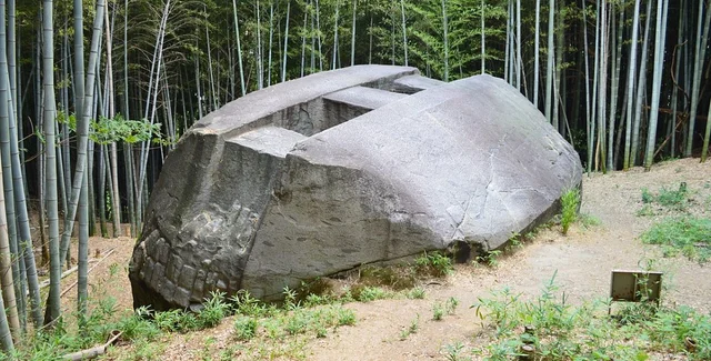 Асука, деревня, расположенная в районе Такаичской префектуры Нара, Япония, известна своими таинственными камнями. Истоки этой древней деревни можно проследить до периода Курганов, который также известен как Кофун Дзидай (ок. 3 ст. — 538 г. н. э.). Период Кофун Дзидай, длившийся с 250 по 552 год нашей эры, характеризуется особым типом земляных курганов в форме ключа, окруженных рвами. Кроме этого, Асука известна своими многочисленными буддийскими храмами, святынями и статуями.