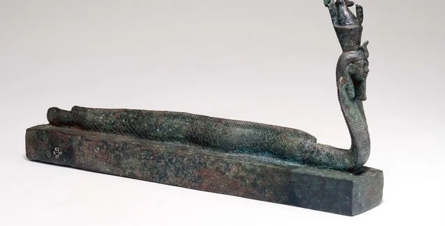 Последние два саркофага, украшенные существом, которое частично является угрем, частично коброй с человеческой головой, были датированы 650-250 годами до нашей эры, но их происхождение остается загадкой.