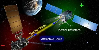 Эксперименты с первичными конструкциями проводятся в большой вакуумной камере, которая имитирует условия космоса. Исследователи считают, что теоретически космический аппарат, оснащенный притягивающим лучом, мог бы стрелять пучком электронов в обломок космического мусора на расстоянии от 15 до 30 метров от себя. На обломке возник бы отрицательный заряд, на космическом корабле в это же время возникнет положительный заряд и таким образом можно притянуть к себе обломок.