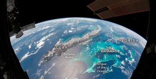 Облака очерчивают острова Карибского моря на этой фотографии, сделанной астронавтом изнутри Купола | Фото: NASA