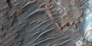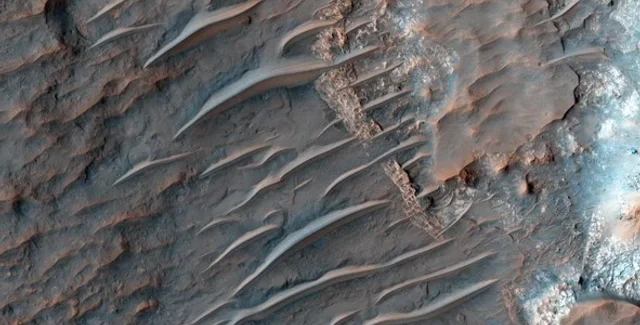 Как показывает исследование, форма дюн подверглась эрозии с появлением длинных темных гребней, то есть поперечных эоловых гребней (ПЭГ) на вершине песчаных дюн. Но эти гребни появились под другим углом, чем у дюн, которые были изменены ветром. Но модели, описывающие движение ветров на Марсе, до сих пор не могли объяснить, как могли появиться такие особенности.