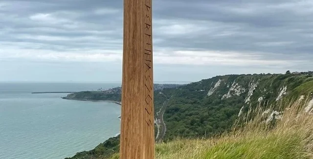 Несколько дней назад местные жители сообщили властям, что они обнаружили в возле деревни Капель-ле-Ферн, которая находится на вершине знаменитых Белых скал Дувра, вырезанный из цельного ствола дерева тотемный столб высотой в примерно 2,4 метра с надписью Перкунас.