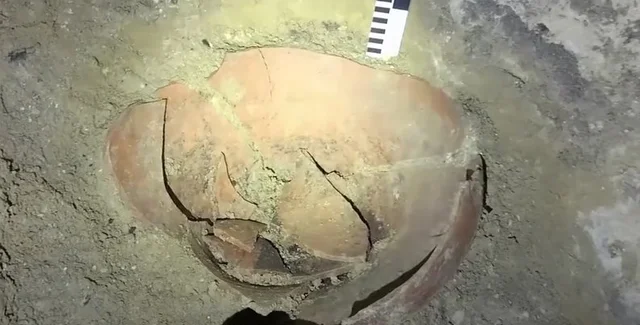 Михаил Сохацкий отмечает, что место, где найден артефакт, расчистили, обнаружив фрагментированный керамический сосуд.