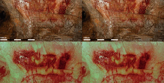 Стремясь глубже понять этот массив наскального искусства, ученые из Университета Комплутенсе в Мадриде применили стереоскопическую фотографию, чтобы зафиксировать стены пещеры. Эта техника предполагает создание изображений, путем использования двух слегка смещенных изображений, подобно эффекту, который можно наблюдать через красно-голубые 3D-очки.