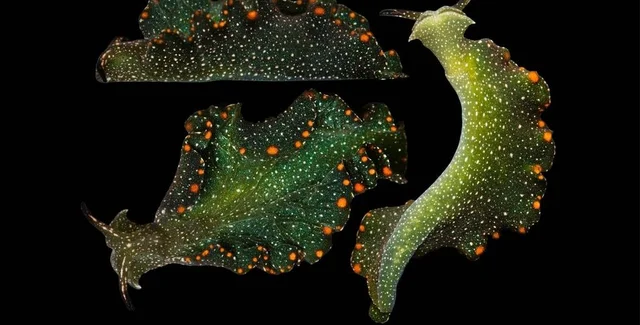 Эти крохотные моллюски не только похожи на звездное небо, но и принадлежат к сакоглоссанам, известным как "морские слизни, питающиеся солнечной энергией". Удивительно, но это вовсе не метафора, моллюски и правда способны напитываться солнечной энергией, чтобы обходиться без еды месяцами.