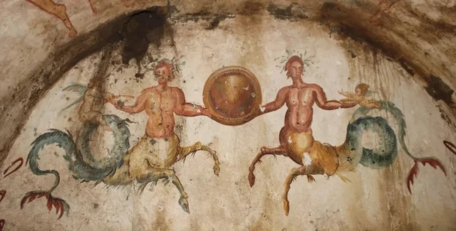 В Италии, недалеко от Неаполя, археологи раскопали гробницу возрастом 2200 лет, стены которой украшают картины с изображением странных мифических существ: пары ихтиокентавров, у которых человеческие головы и туловище, а нижняя часть напоминает тела лошади и хвост рыбы, пишет Live Science.