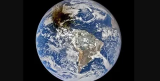 На этом изображении показана Земля с расстояния в 1,6 млн км, на которую падает тень Луны