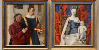 В 15 веке во Франции талантливый художник Жан Фуке работал над созданием шедевра, известного как "Меленский диптих". Диптих — это причудливый термин для обозначения картины, состоящей из двух полотен. На левой панели вы видите мужчину, по имени Этьен Шевалье, в красной мантии, который молится.