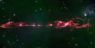 Ученые считают, что очень молодой звезде по космическим меркам, которая находится между двух струй плазмы, 50 тысяч лет. В будущем она превратится в звезду похожую на Солнце. Что касается красного цвета струй, то он указывает на наличие молекулярного водорода, который был активирован ударными волнами. На новом снимке телескопа Уэбб, который увидел этот объект в инфракрасном диапазоне света, также можно увидеть более старые звезды, а также далекую галактику.