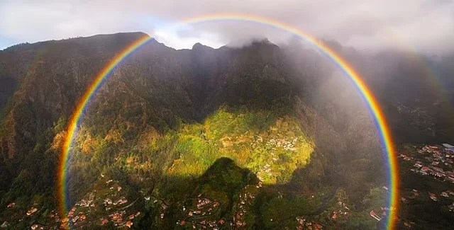 В то же время, если вам посчастливится оказаться на вершине здания или вы окажетесь в этот момент в самолете, под вашей точкой наблюдения могут быть капли воды и солнечный свет. Если условия окажутся идеальными, вам, вероятно, удастся увидеть радугу целиком.