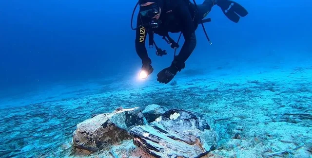 Изначально груз давно затонувшего корабля был обнаружен полицейскими дайверами на глубине около 30-40 метров. Далее находка была исследована учеными из Управления столичного округа Неаполя. Ученые обнаружили, что затонувший груз состоял из серии обработанных кернов из обсидиана, а на поверхности одного из них все еще виднеются следы долбления и резьбы.