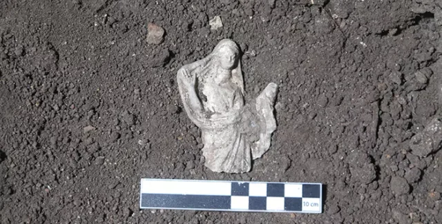 "Еще один интересный момент заключается в том, что это была не единственная фигурка Деметры; мы нашли еще одну внутри цистерны, также изображенную в той же позе. Третья находка, которая, возможно, не очень понятна, потому что разбита, — это обломок декорированной вазы. На ее фрагментах изображены снопы пшеницы, которые, как мы знаем, ассоциируются с богиней Деметрой", — добавил он.