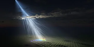 Когда космический луч попадает в атмосферу Земли, то он сталкивается с другими частицами и появляется космический ливень, который достигает поверхности планеты. А здесь специальные детекторы фиксируют появление таких частиц очень высокой энергии.