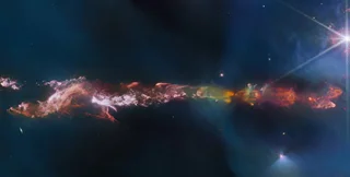 Новая фотография, которую сделал космический телескоп Уэбб, действительно впечатляет, ведь она выглядит как произведение искусства. Но научная ценность этого снимка состоит в том, что ученые получили важные данные об объекте Хербига-Аро 797 или HH 797. Такие объекты представляют собой туманности, которые сформированы струями плазмы, исходящими от протозвезд (звезды, которые недавно появились и еще не стали обычными звездами). Когда струи плазмы врезаются на огромной скорости в окружающие протозвезду газ и пыль, создаются ударные волны, которые и формируют туманность, пишет IFLScience.
