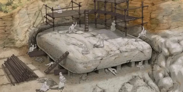 Чтобы справиться с этими большими и хрупкими камнями, древние строители нуждались не только в навыках работы с камнем, но и в опыте в деревообработке и плетении веревок. Они, вероятно, использовали значительное количество древесины для создания лесов во время добычи и для подготовки дорог для транспортировки этих огромных камней.