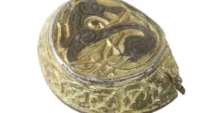 Реликвия диаметром 19,4 мм, которой примерно 1200 лет, отличается сложными узорами, изображающими стилизованное животное, смотрящее через плечо. Мастерство исполнения, напоминающее стили, найденные в знаменитой Келлской книге или Евангелие из Линдисфарна демонстрирует мастерство англосаксонских ремесленников. Артефакт, созданный с помощью сложной техники позолоты с применением ртути, смешанной с порошковым золотом, показывает высокий уровень мастерства этого периода.