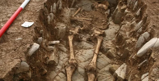 Найденные тела были похоронены около 1500 лет назад и их положили на бок лицом к югу. Археологи предполагают, что такое захоронение указывает на особую погребальную церемонию.