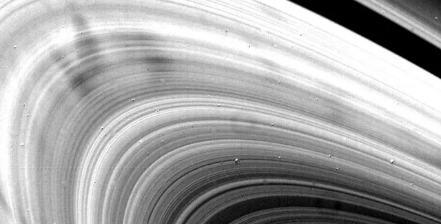 Ученые до сих пор точно не знают, как именно происходит формирование темных особенностей в кольцах Сатурна. Считается, что, возможно, именно взаимодействие потоков солнечных частиц и магнитного поля газового гиганта создают электростатические, парящие над кольцами частицы льда или пыли, которые и формируют загадочные темные пятна.