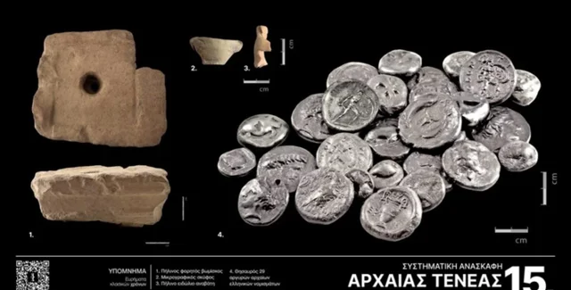 Дирекция доисторических и классических древностей Министерства культуры Греции объявила об открытии, которое произошло во время раскопок в октябре 2023 года. Рядом с акведуком археологи раскопали клад из 29 редких серебряных древнегреческих серебряных монет, датированных концом VI века до н. э. — 330-ми годами до н. э. Среди этих монет — одни из самых редких и наиболее исторически значимых, в частности статеры из разных регионов, на которых изображены выдающиеся события, например борьба Геракла со змеями.