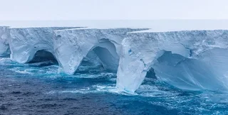 Корабль экспедиционной компании Eyos прибыл к самому большому айсбергу в мире под названием A23a, который оторвался от дна моря Уэдделла возле Антарктиды в ноябре прошлого года и начал свое движение в южную часть Атлантического океана. Члены экспедиции смогли запечатлеть огромные пещеры и арки, вырезанные в замерзших стенах гигантской ледяной глыбы, пишет BBC.