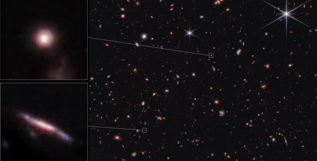 Во время самых далеких наблюдений космического телескопа "Хаббл" были обнаружены такие удлиненные галактики. Позже телескоп Джеймса Уэбба подтвердил эти наблюдения, а также показал, что еще более далекие галактики имеют такую же форму.