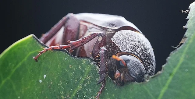 Черный крупный жук — вид широко распространенный в Азии и известный как сельскохозяйственный вредитель. Эти жуки-скарабеи устраивают свидания каждую ночь: для этого самки покидают почвенные укрытия и поднимаются на большую высоту, а далее используют феромоны (метиловый эфир l-изолейцина и l-линалоолом). Самцы воспринимают этот запах как часы.