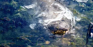 В Северной Каролине и Техасе наблюдают животных, которые буквально вмерзли в озеро, оставив на поверхности лишь нос и рот.