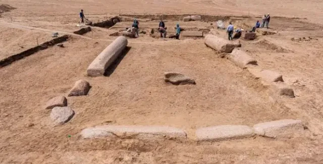 Археологи во главе с Мостафой Вазири, генеральным секретарем Высшего совета древностей Египта, раскопали руины храма через входные ворота, обнаружив две большие гранитные колонны. Ворота упали под действием мощного древнего землетрясения.