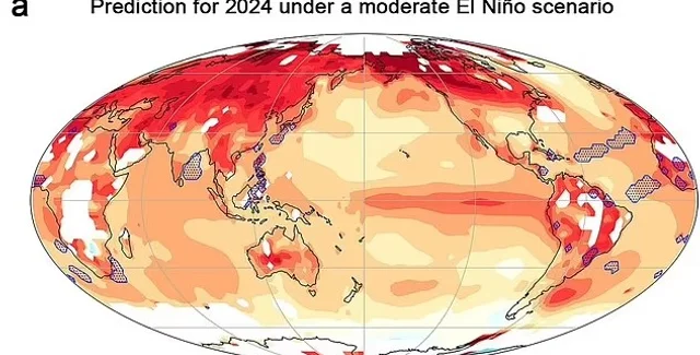 Модель также предсказывает, что даже при умеренном сценарии с 90% вероятностью средняя приземная температура побьет исторический рекорд 2023 года: при умеренном Эль-Ниньо температура GSMT будет на 1,03–1,10°C выше среднего; при сильном Эль-Ниньо температура поднимется на 1,06–1,20°C выше среднего.