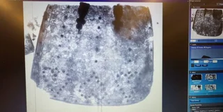 Когда археологи просеивали почву, из-под земли появился кусок металла, похожий на поднос из кафетерия. Настоящую суть артефакта обнаружили с помощью рентгеновского луча, который показал заклепки, расположенные в форме трех сердец.