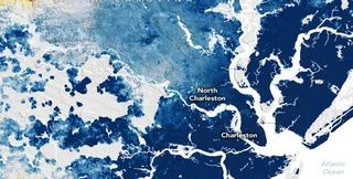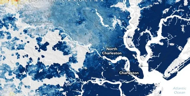 Данные свидетельствуют о том, что одним из наиболее быстро тонущих городов является Чарльстон (Южная Каролина), центр города здесь находится в 3 метрах над уровнем моря. Наблюдения ученых показывают, что город опускается с невероятной скоростью — 4 миллиметра в год. Команда считает, что оседание Чарльстона во многом вызвано человеческой деятельностью, в том числе откачкой грунтовых вод.