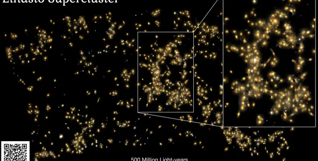 Что касается сверхскопления галактик Эйнасто, то его огромные размеры можно понять по тому факту, что луч свет, вышедший из одного края структуры, долетит до ее другого края за 360 млн лет.