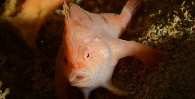 Ученые исследовали затонувший корабль, когда наткнулись на удивительную редкую рыбу с руками вместо плавников.