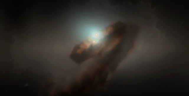 Двойная звезда FU Ориона находится на расстоянии 1500 световых лет от нас. Когда яркость одной из звезд внезапно увеличилась, то 88 лет назад астрономы были очень удивлены. Дело в том, что двойная звезда имеет возраст 2 млн лет, а по космическим меркам – это младенец. Подобное взрывное увеличение яркости наблюдается только у старых, умирающих звезд. Авторы исследования использовали радиотелескоп ALMA, чтобы определить, почему и как это происходит.