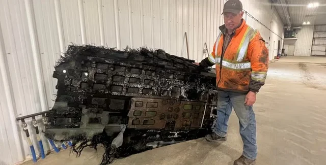 Фермер планирует продать 40-килограммовый кусок обгоревшего металла, чтобы собрать деньги на строительство хоккейного поля.