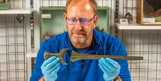 Джон Белгрейв, 60-летний консультант по вопросам пенсионного обеспечения на пенсии, оказался в одиночестве и решил подняться на более высокую местность, чтобы найти своих коллег-поисковиков. Именно тогда его металлоискатель просигнализировал о чрезвычайной находке: меч, датируемый средним бронзовым веком. Артефакт длиной 61 см был разломан на три части и похоронен рядом с останками состоятельного человека. Этот меч с бронзовой рукояткой является лишь третьим в своем роде, найденным в Британии, причем предыдущие два были неполными.