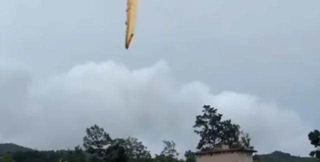 Ракета-носитель Чанчжэн-2С успешно отправила на орбиту космический аппарат для изучения гамма-всплесков, созданный совместными усилиями ученых Китая и Франции. Но вскоре после запуска, как предполагается, ускоритель первой ступени космической ракеты упал рядом с деревней на юго-западе Китая. В социальных сетях появилось много видеороликов, на которых запечатлено это событие, которое естественно сильно испугало местных жителей. На видео видно бесконтрольное падение облака ракеты и при этом в небе видно облако желтого дыма, исходящего из падающего ускорителя.
